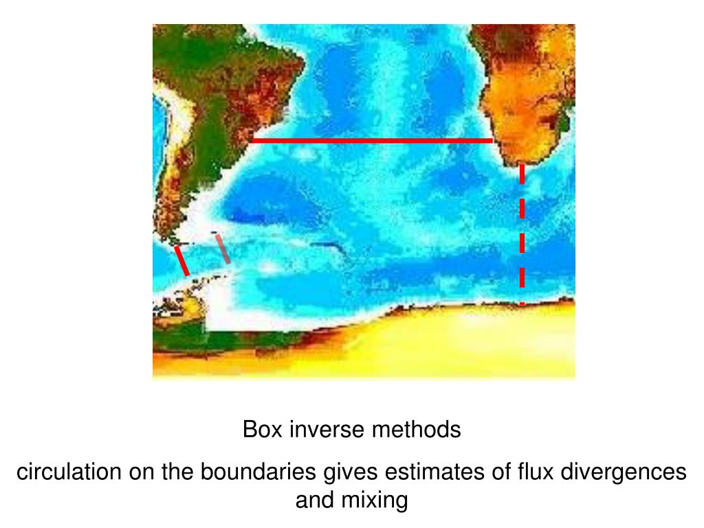 Box inverse methods circulation on the boundaries gives estimates of flux divergences and mixing