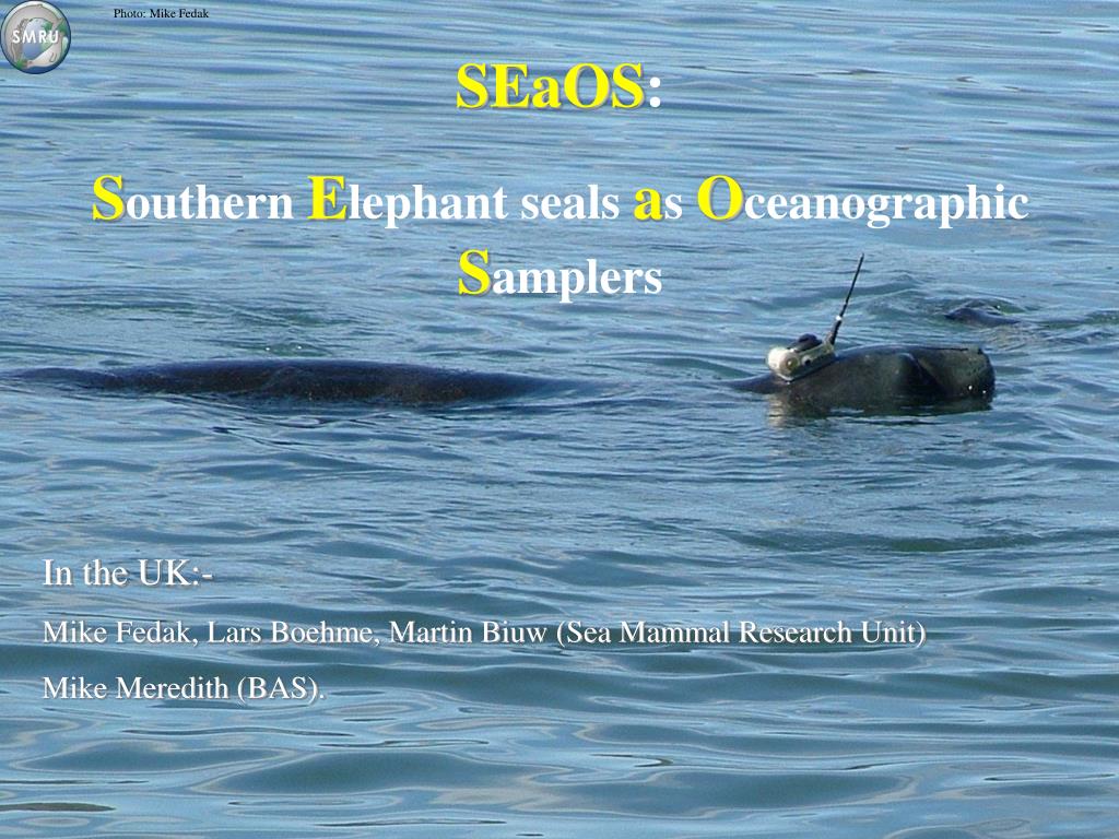Photo: Mike Fedak SEaOS: Southern Elephant seals as Oceanographic Samplers In the UK:- Mike Fedak, Lars Boehme, Martin Biuw (Sea Mammal Research Unit) Mike Meredith (BAS).