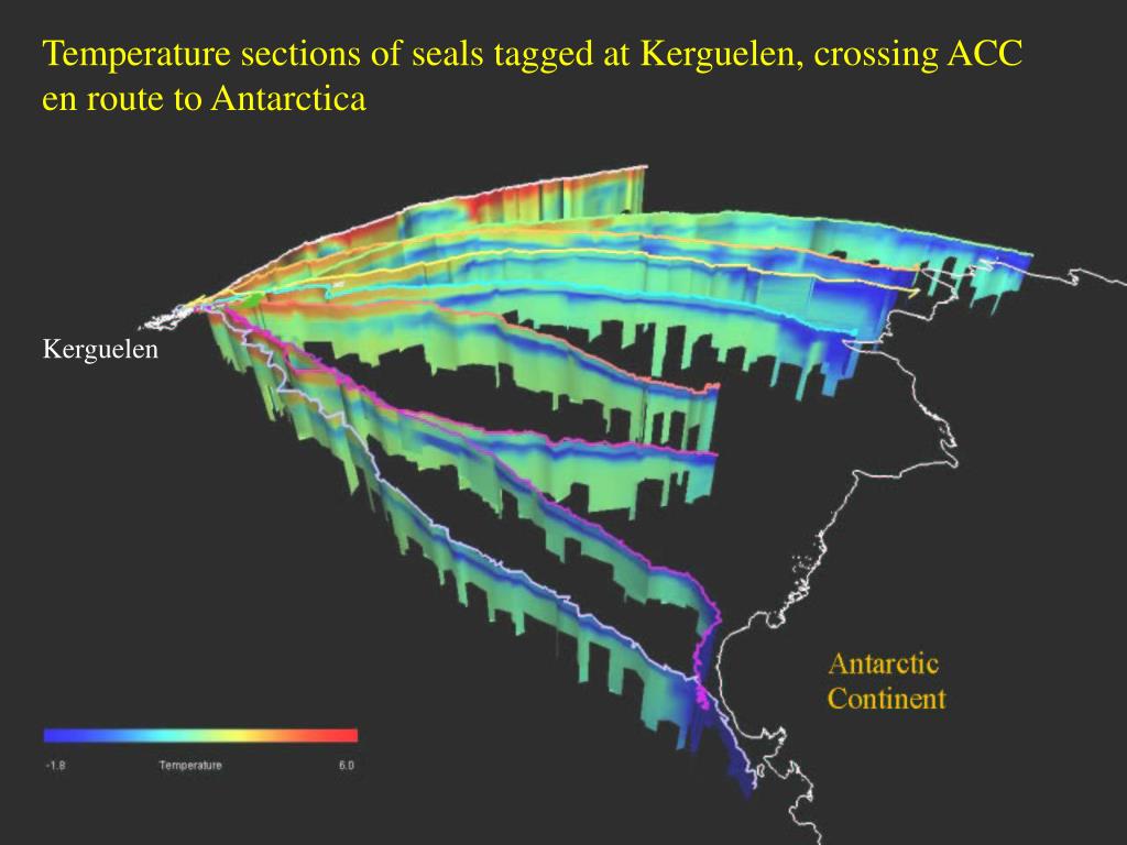 Temperature sections of seals tagged at Kerguelen, crossing ACC en route to Antarctica Kerguelen