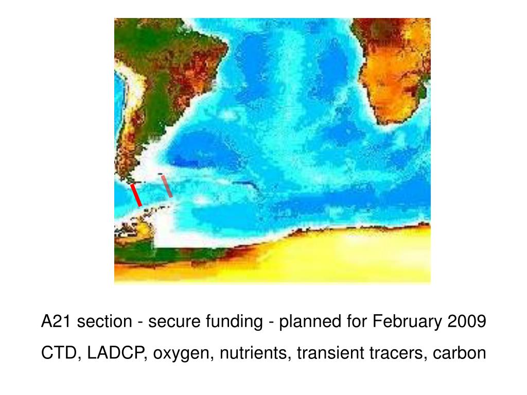 A21 section - secure funding - planned for February 2009 CTD, LADCP, oxygen, nutrients, transient tracers, carbon