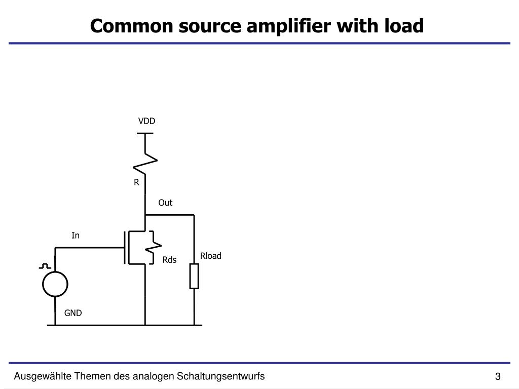 Common source amplifier with load VDD R Out In Rload Rds GND Ausgewählte Themen des analogen Schaltungsentwurfs