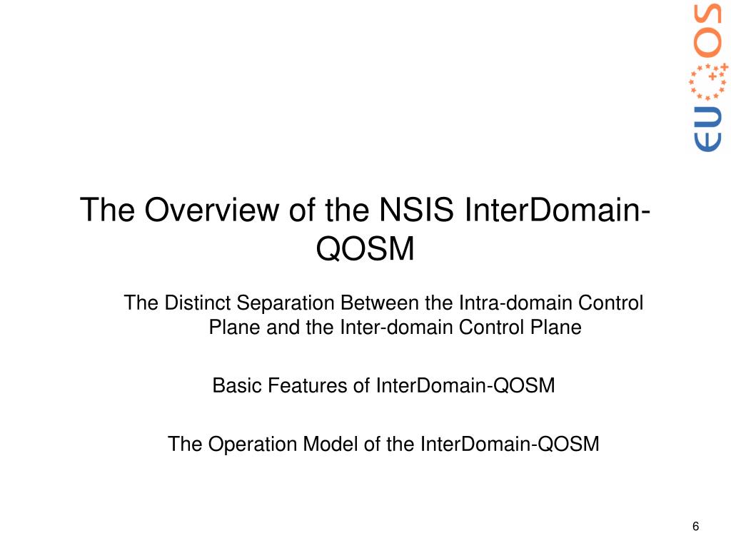 The Overview of the NSIS InterDomain-QOSM The Distinct Separation Between the Intra-domain Control Plane and the Inter-domain Control Plane Basic Features of InterDomain-QOSM The Operation Model of the InterDomain-QOSM