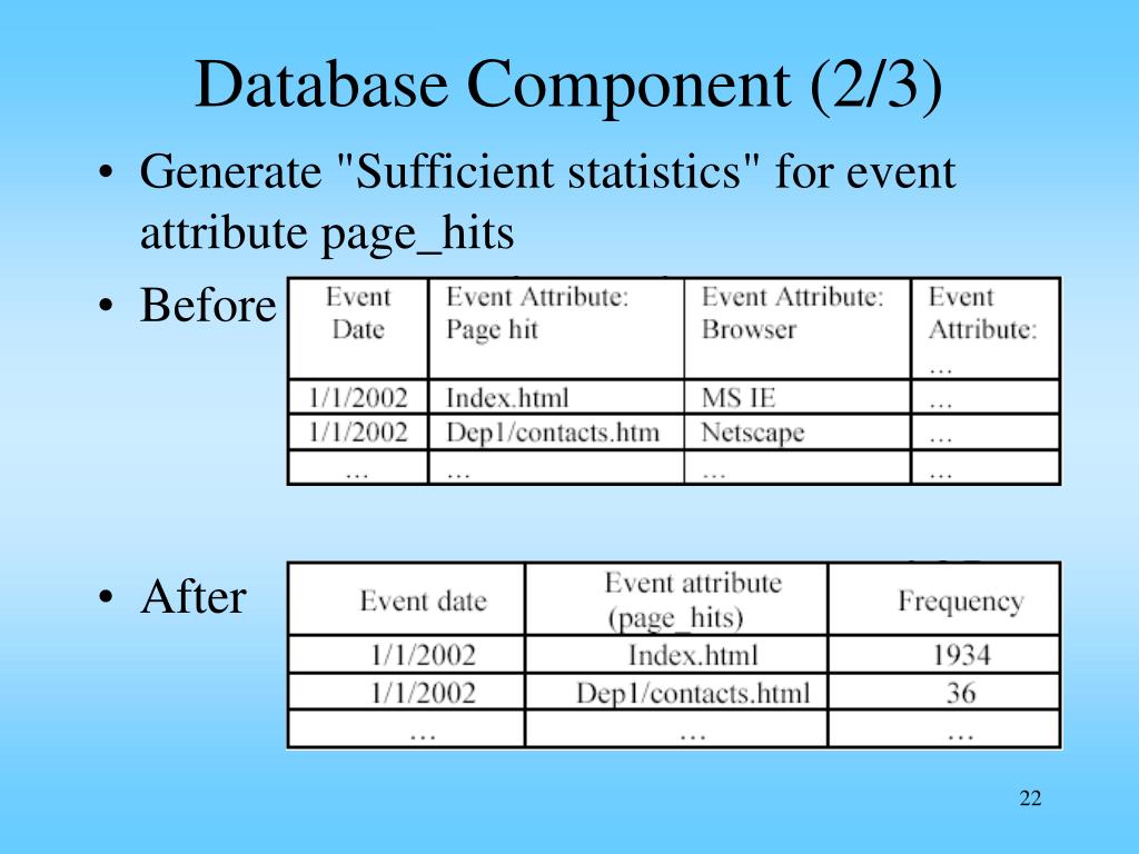 Database Component (2/3) • Generate "Sufficient statistics" for event attribute page_hits • Before • After