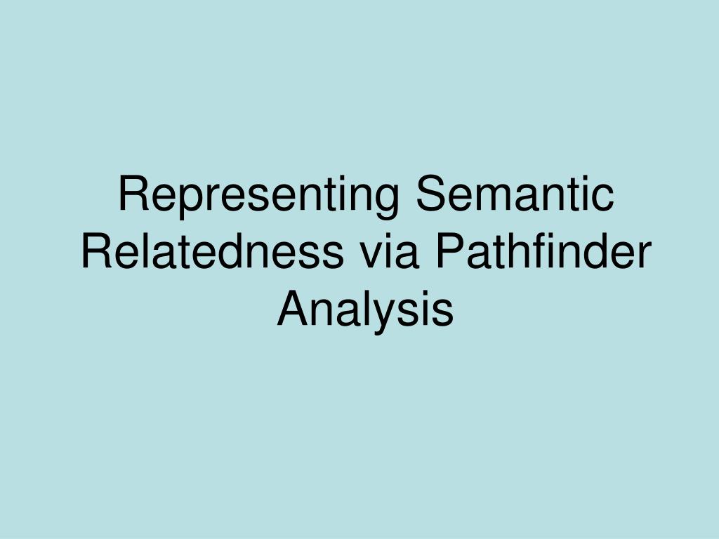 Research Colloquium 2007. Projects and Proposals. Representing Semantic Relatedness via Pathfinder Analysis. Sample Set of Fruit/Vegetable/ Tool Concepts. FRUITS VEGETABLES TOOLS Apple Bean Hammer Banana Pea Saw Orange Potato Wrench Tool. For each of the following pairs of