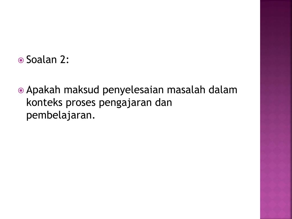 Soalan 2: • Apakahmaksudpenyelesaianmasalahdalamkonteksprosespengajarandanpembelajaran.