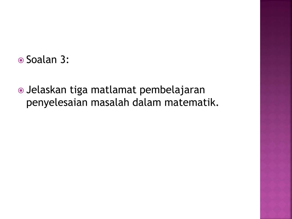 Soalan 3: • Jelaskantigamatlamatpembelajaranpenyelesaianmasalahdalammatematik.