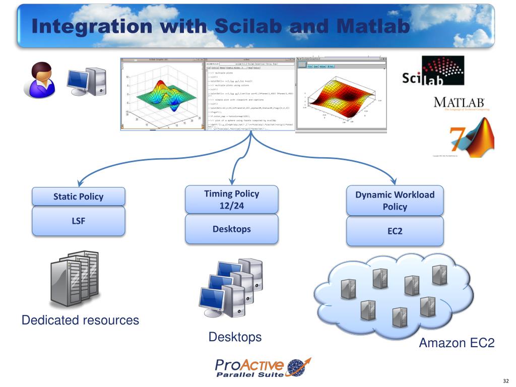 Integration with Scilab and Matlab Dynamic Workload Policy Timing Policy 12/24 Static Policy LSF Desktops EC2 Dedicated resources Amazon EC2 Desktops
