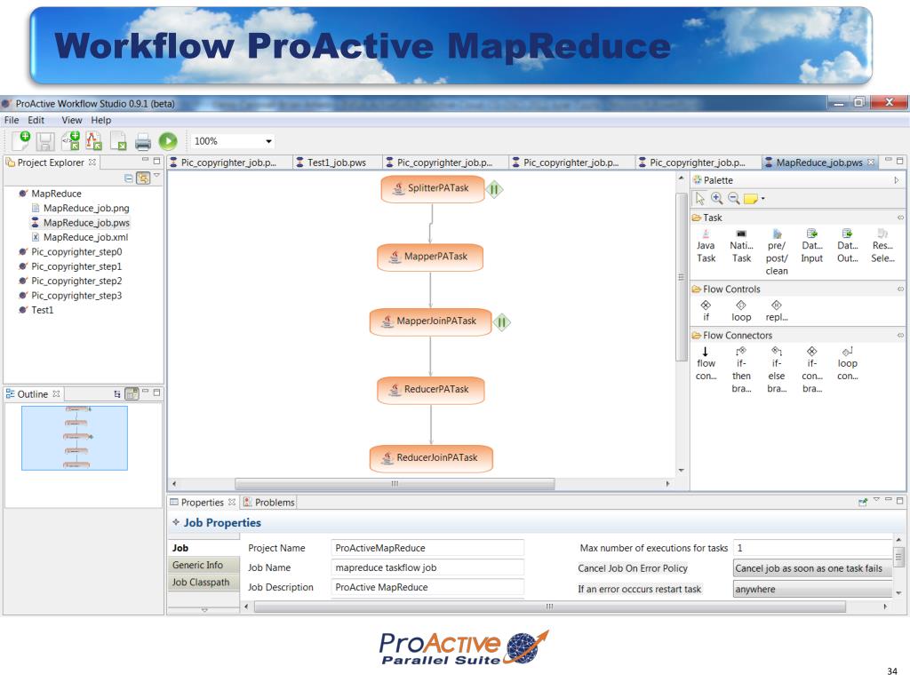 ProActiveMapReduce • Same APIs as Hadoop(Easy switch from Hadoop to ProActive) • Does not requires an HDFS File System • Runs on general purpose, Multi-tenant, Multi-Applications Grids and Clouds • Available as PaaS