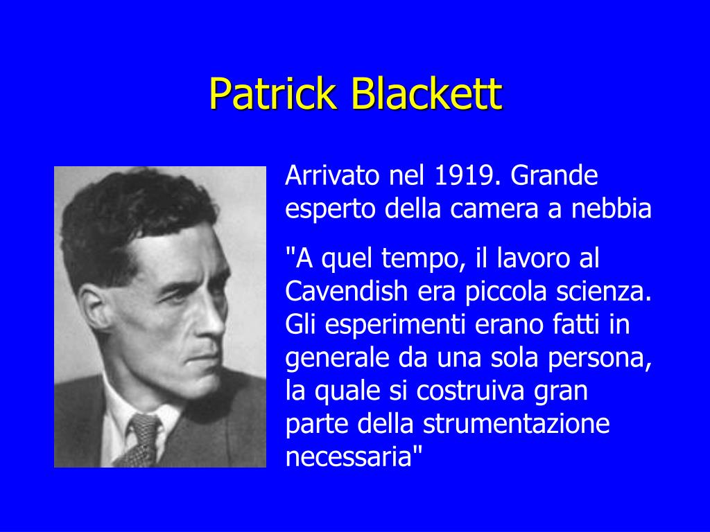 Patrick Blackett Arrivato nel 1919. Grande esperto della camera a nebbia "A quel tempo, il lavoro al Cavendish era piccola scienza. Gli esperimenti erano fatti in generale da una sola persona, la quale si costruiva gran parte della strumentazione necessaria"