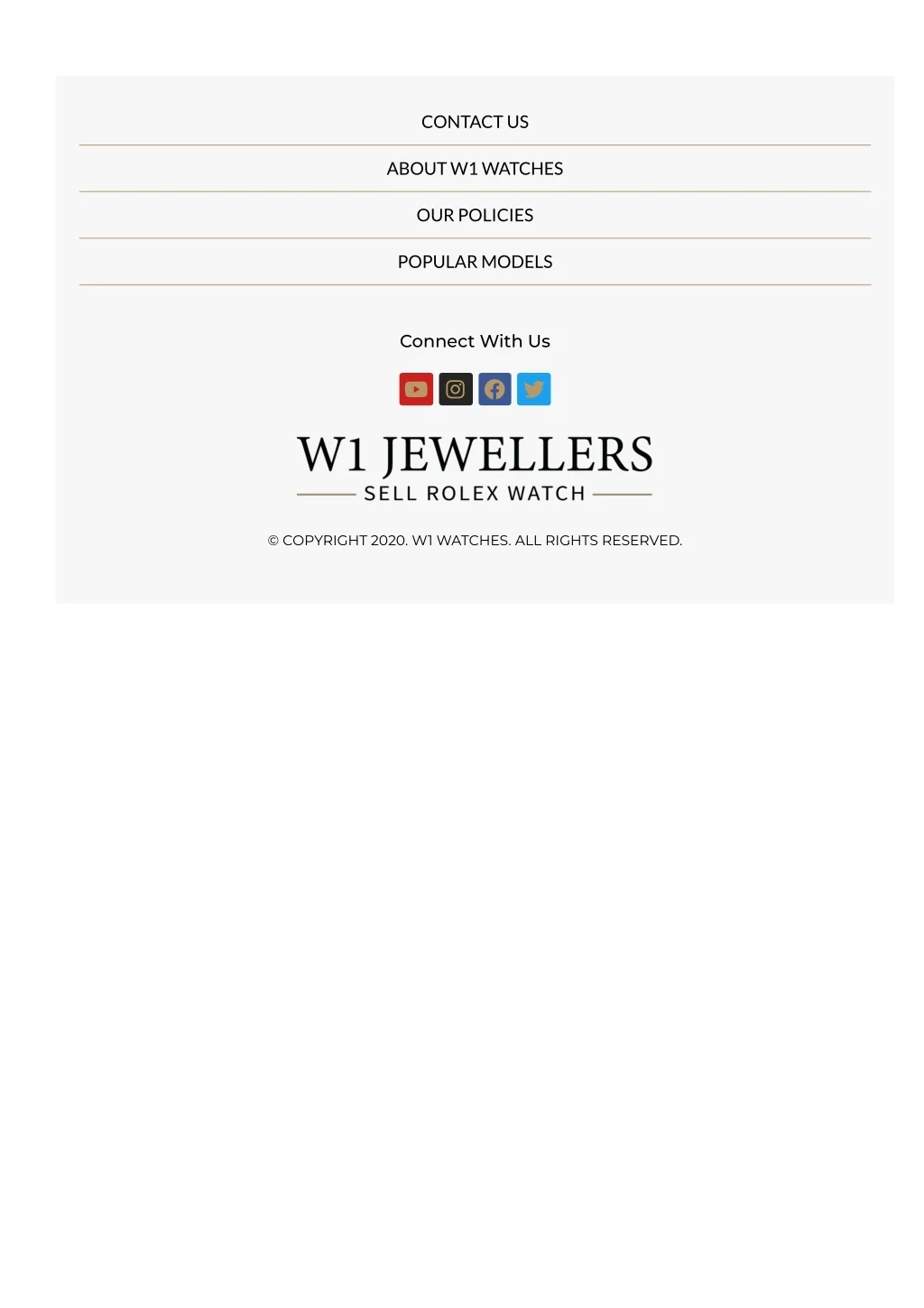 CONTACT US ABOUT W1 WATCHES OUR POLICIES POPULAR MODELS Connect With Us © COPYRIGHT 2020. W1 WATCHES. ALL RIGHTS RESERVED.