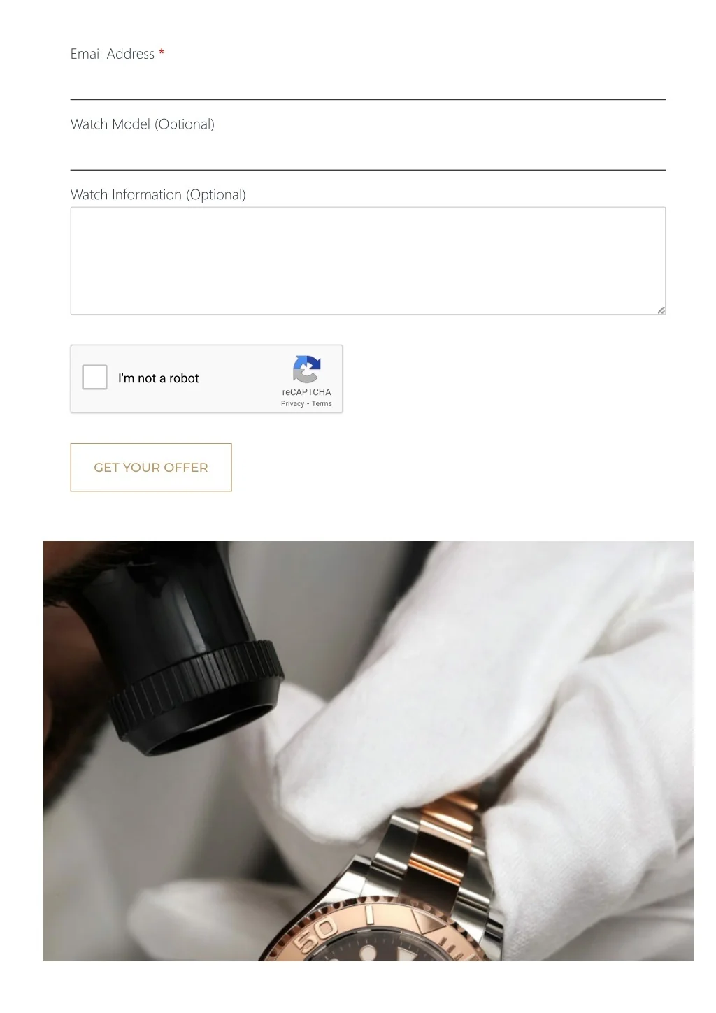 Email Address * Watch Model ﴾Optional﴿ Watch Information ﴾Optional﴿ I'm not a robot reCAPTCHA Privacy - Terms GET YOUR OFFER