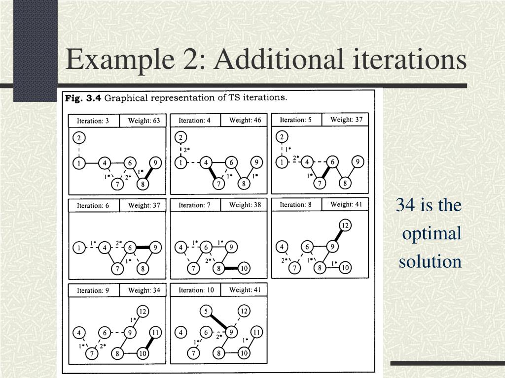 Example 2: TS search trajectory Note the local optima in iterations 5 and 6