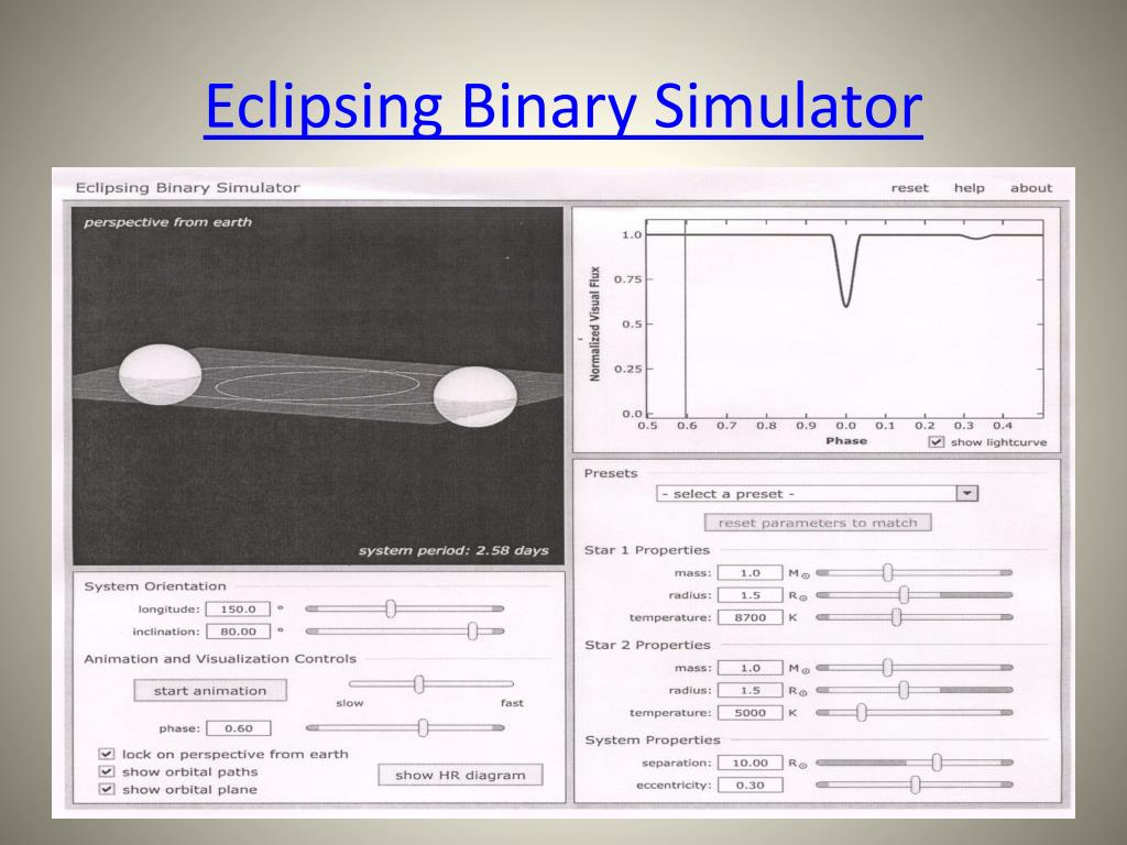 ZVIJEZDE U PARU • Dvojnih zvijezda ima otprilike koliko i jednostrukih . • POMRČINSKI DVOJNE ZVIJEZDE • zvijezde se gibaju tako da se u gibanju međusobno zaklanjaju . • Primjer : Algol ( β Perzeja )- vidljiva okom ; T < 3 dana ; glavna zvijezda i pratilac nisu jednakog sjaja . • PROMJEN LJIVE I EKSPLOZIVNE ZVIJEZDE • Pulsirajući promjenljive zvijezde • -najčešće divovske zvijezde nestalnog obujma ; njihova atmosfera pulsira