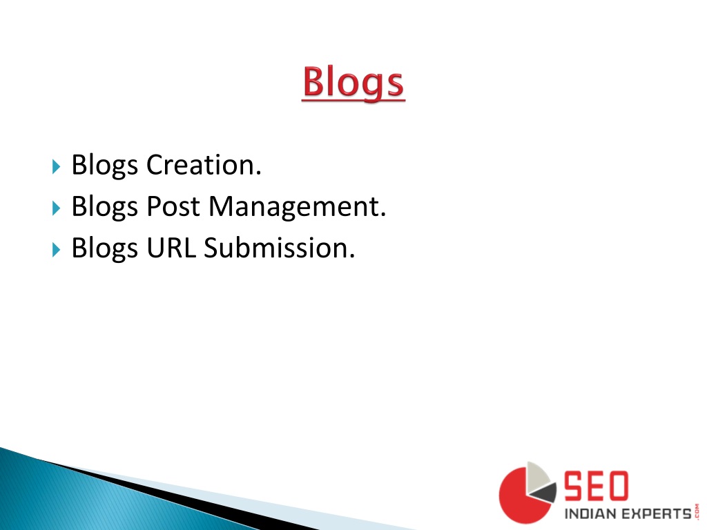 Blogs • Blogs Creation. • Blogs Post Management. • Blogs URL Submission.