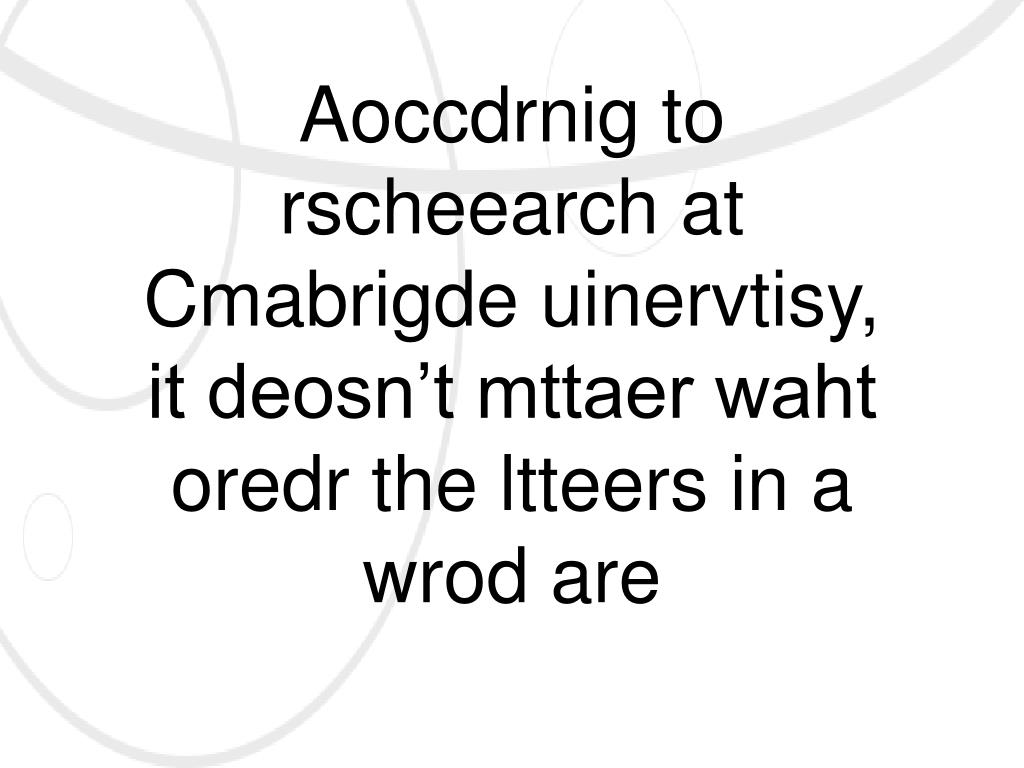 Aoccdrnig to rscheearch at Cmabrigde uinervtisy, it deosn’t mttaer waht oredr the ltteers in a wrod are