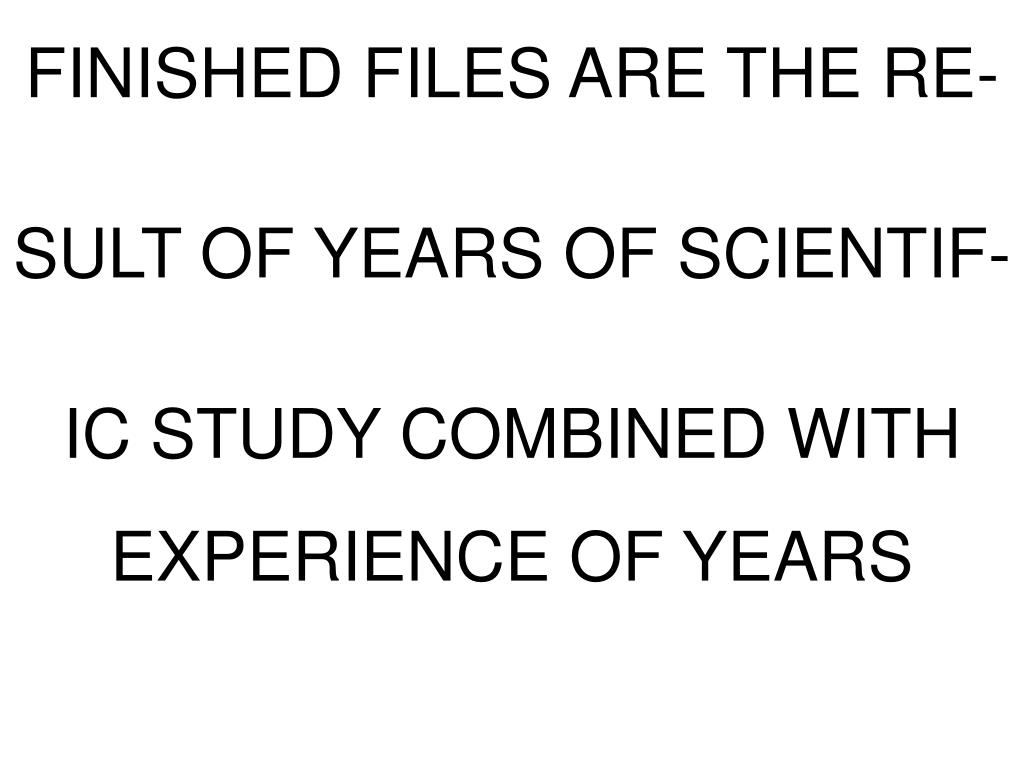 FINISHED FILES ARE THE RE- SULT OF YEARS OF SCIENTIF- IC STUDY COMBINED WITH EXPERIENCE OF YEARS