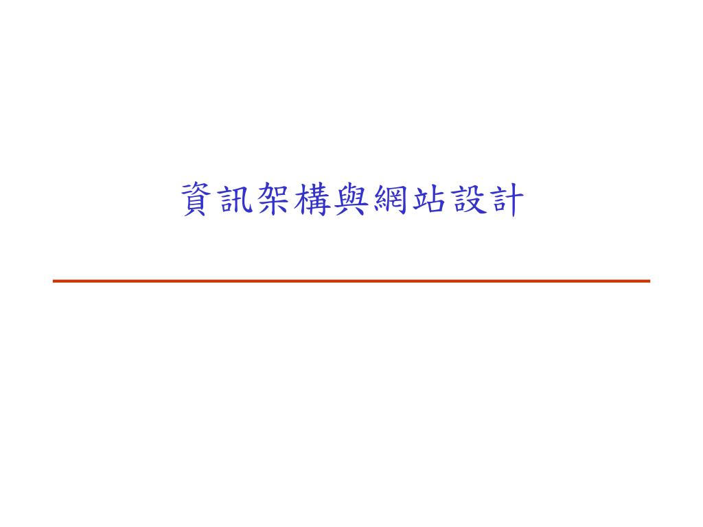 何謂資訊架構 • 資訊系統中,組織、歸類以及瀏覽體系的組合結構 • 資訊空間中的結構性設計,讓任務的完成更容易,對資訊內容的存取更直接 • 設計網站和企業網路的結構與分類的藝術和科學,可以協助我們尋找資訊並予以管理 • 讓人們可以實際找到他們要找的東西。資訊架構師有如網際網路的圖書館員 • 為人們使用資訊超載的問題 • 一種新興的實務學科和社群,目的是把設計和架構的原則帶進數位領域中