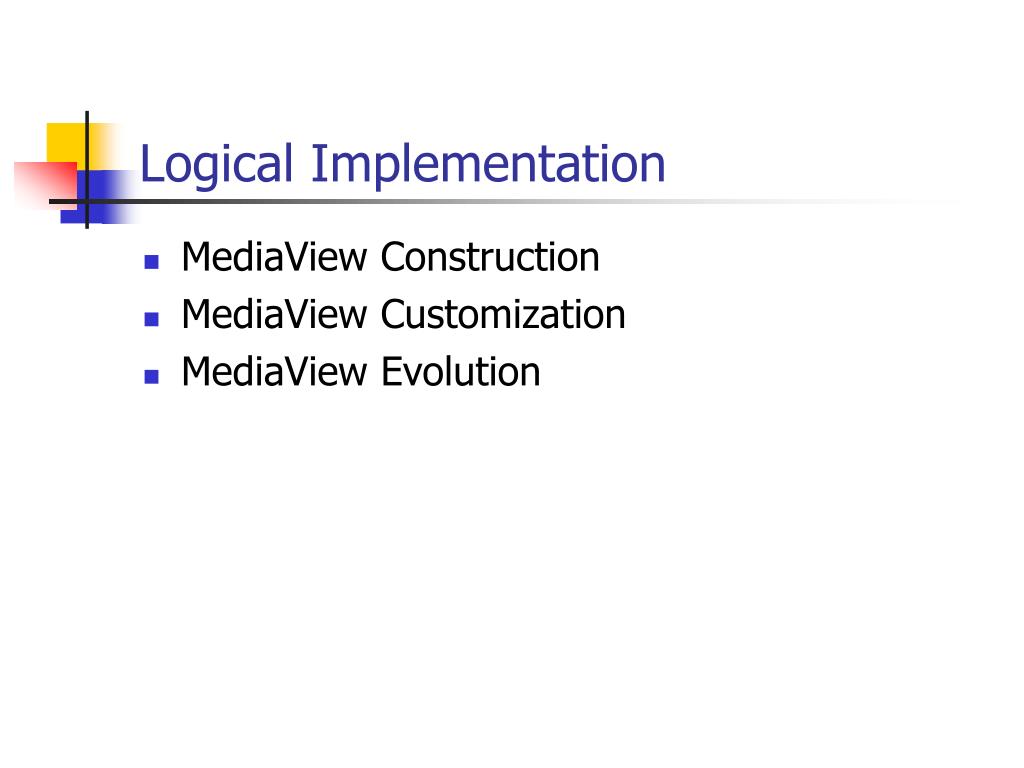 Logical Implementation • MediaView Construction • MediaView Customization • MediaView Evolution
