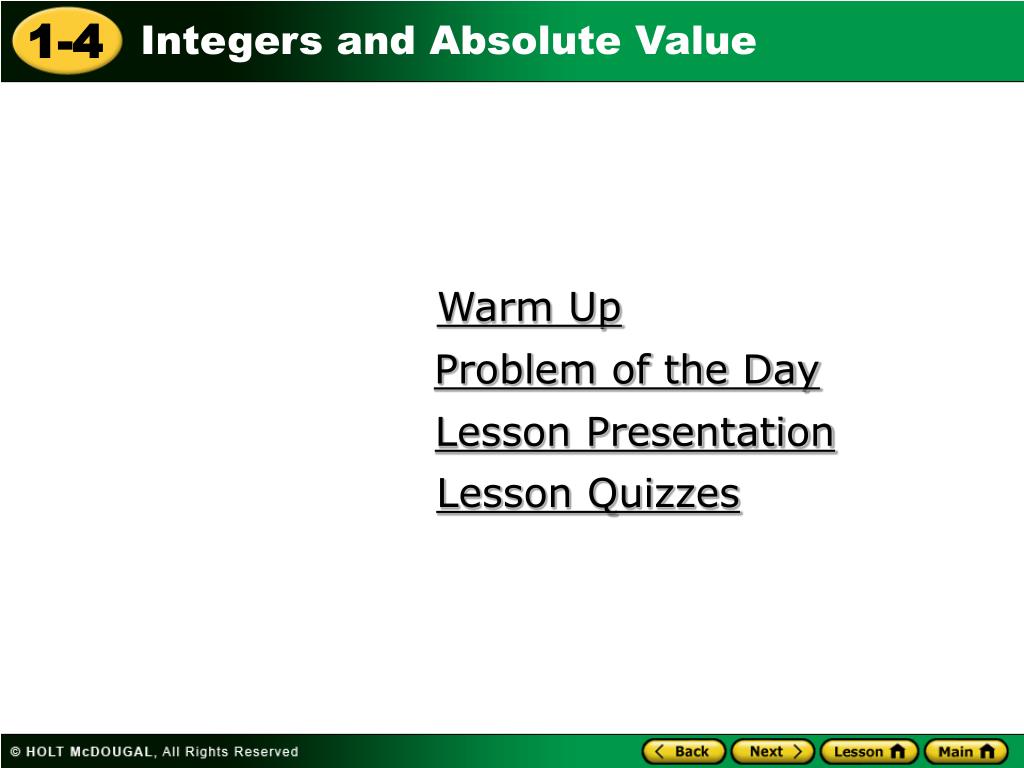 Warm Up Problem of the Day Lesson Presentation Lesson Quizzes