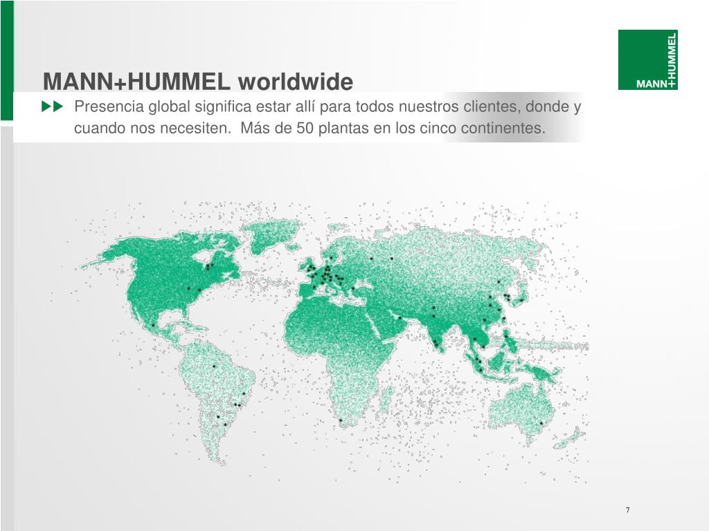 MANN+HUMMEL worldwide • Presencia global significa estar allí para todos nuestros clientes, donde y cuando nos necesiten. Más de 50 plantas en los cinco continentes.