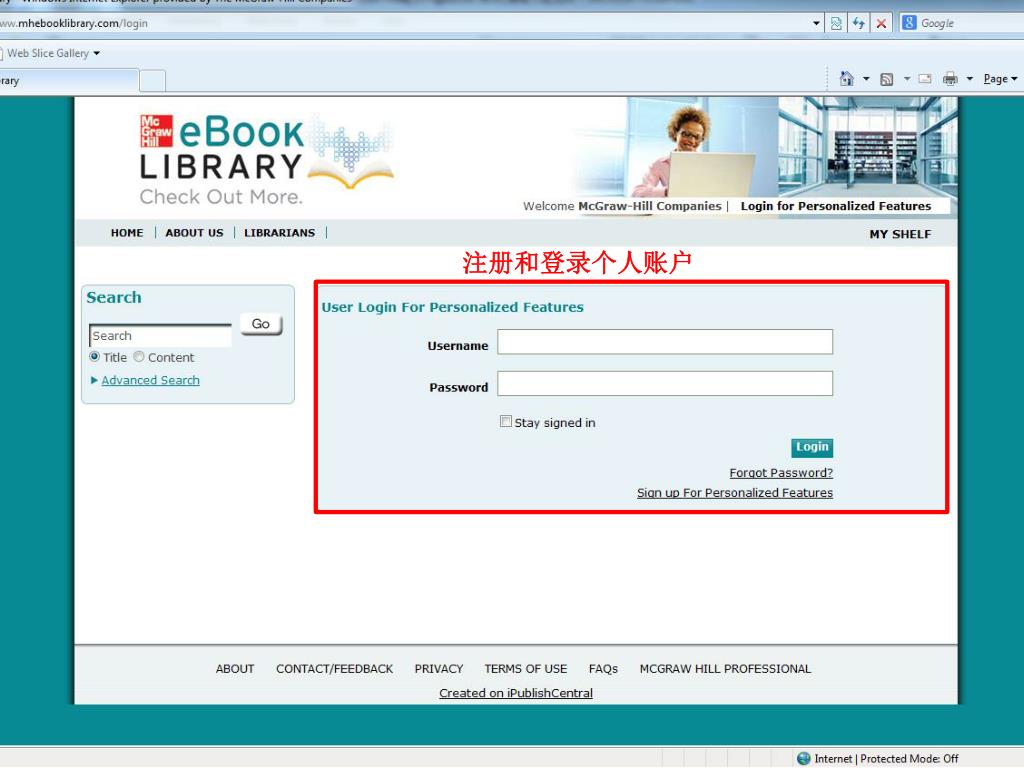 McGraw-Hill 电子产 品. Ebook Library www.mhebooklibrary.com. 数据库介绍. Ebook Library 麦格劳-希尔在线图书馆是麦格劳-希尔教育出版公司专业图书领域发布的最新数字化平台。此款产品为图书馆的用户带来了最前沿、最丰富、最专业的信息资源。