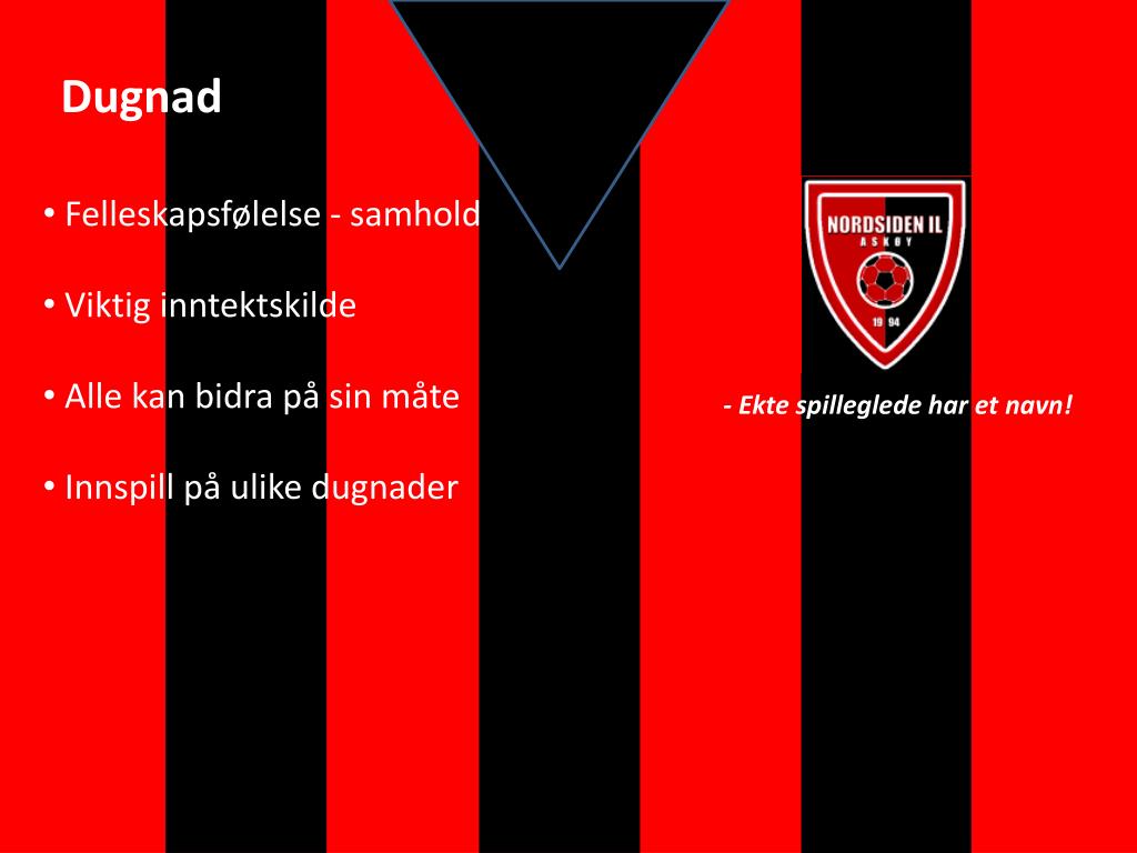Dugnad • Felleskapsfølelse - samhold • Viktig inntektskilde • Alle kan bidra på sin måte • Innspill på ulike dugnader - Ekte spilleglede har et navn!