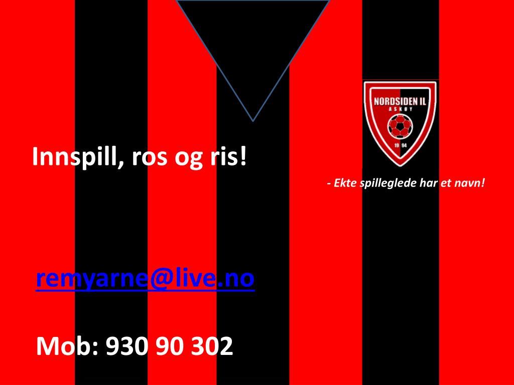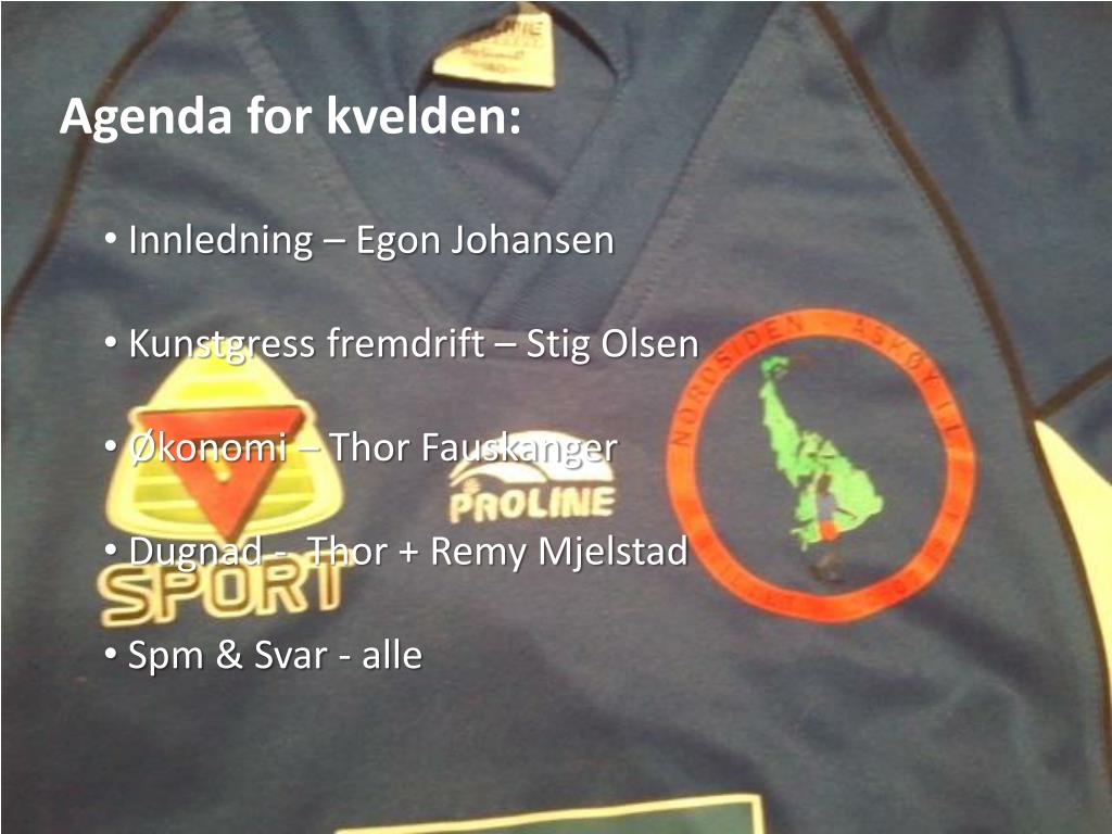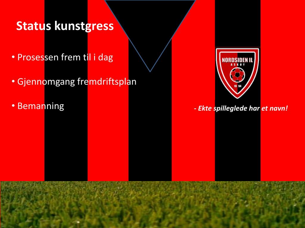 - Ekte spilleglede har et navn!. Allmøte Træet , 21.mars 2011. Agenda for kvelden:. Innledning – Egon Johansen Kunstgress fremdrift – Stig Olsen Økonomi – Thor Fauskanger Dugnad - Thor + Remy Mjelstad Spm & Svar - alle. Litt om Nordsiden IL. Historien Våre mål