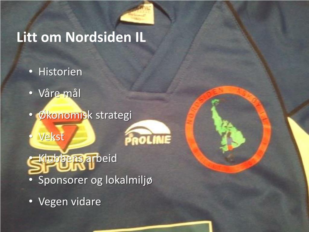 Litt om Nordsiden IL • Historien • Våre mål • Økonomisk strategi • Vekst • Klubbens arbeid • Sponsorer og lokalmiljø • Vegen vidare