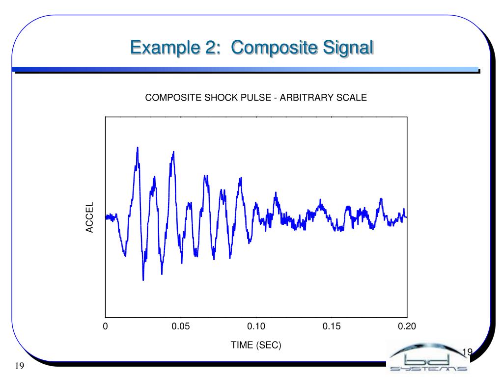 Example 2: Composite Signal Derivation • Add the four signals • Shift time scale and invert amplitudes as necessary to achieve highest GRMS value • Use brute force random number generation • Scaling in next steps will compensate for potential constructive and destructive interference in composite pulse