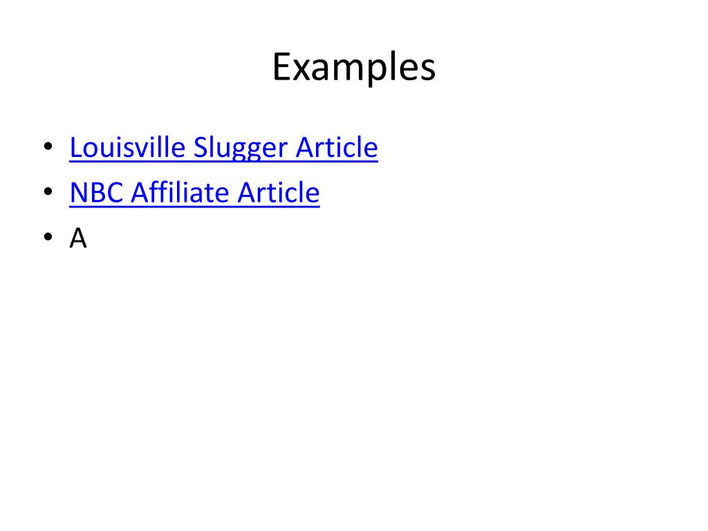 Examples • Louisville Slugger Article • NBC Affiliate Article • A