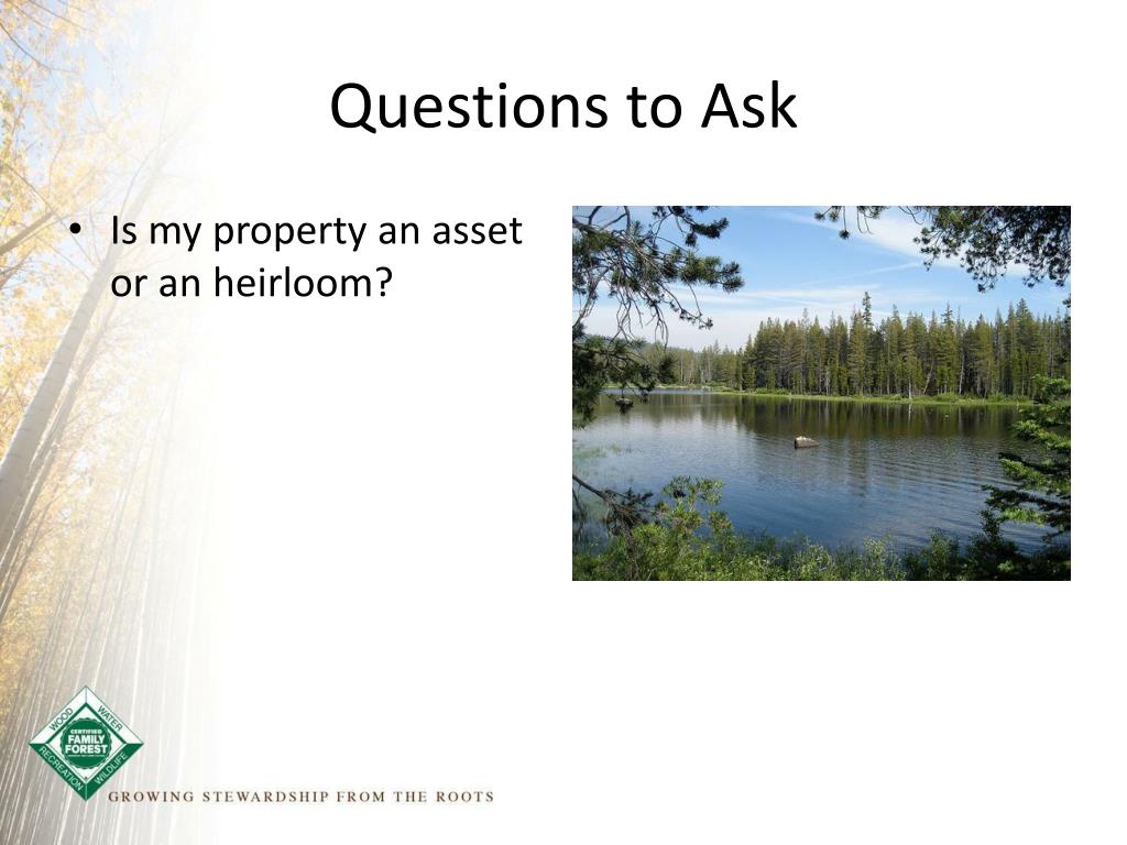 Questions to Ask • Does my family share my love of the property and my desire to keep it?