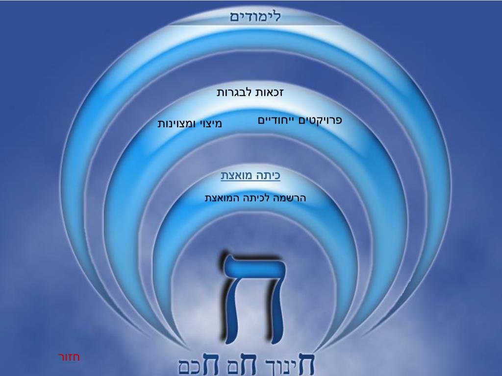 זכאות לבגרות פרויקטים ייחודיים מיצוי ומצוינות כיתה מואצת כיתה מואצת הרשמה לכיתה המואצת חזור חזור