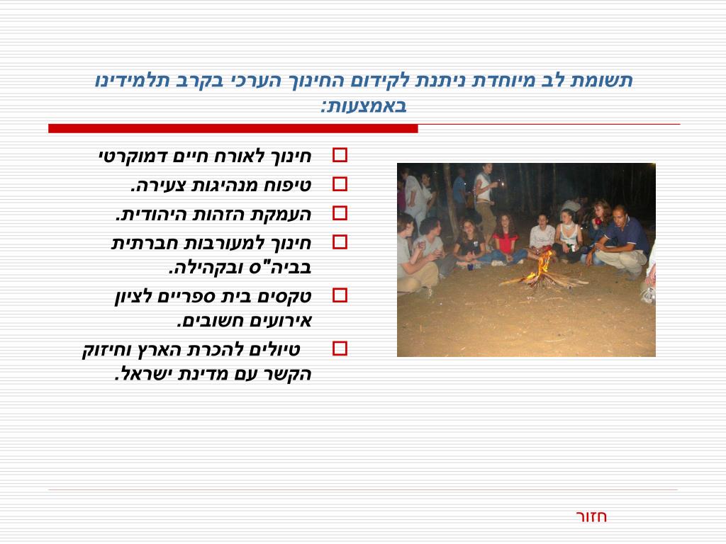 חינוך לערכים, לאיכות ומעורבות חברתית קידום החינוך הערכי חזור