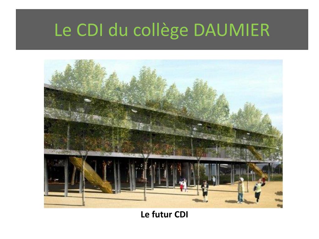 Le CDI du collège DAUMIER. Le futur CDI. L’accueil des élèves. Le CDI collège est ouvert lundi, mardi, jeudi et vendredi. Vous pouvez venir au CDI avec vos professeurs pendant vos heures de cours. durant les récréations pour emprunter ou rendre un livre.