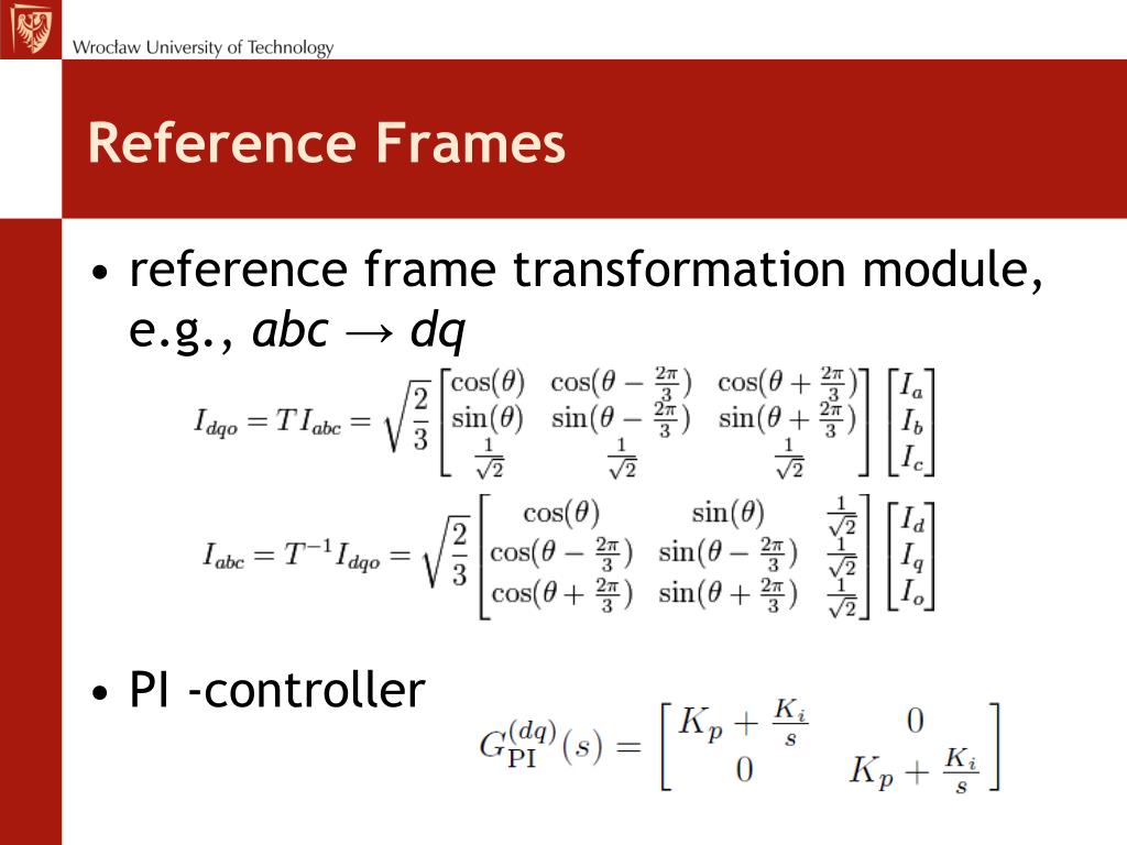 Reference Frames • reference frame transformation module, e.g., abc → dq • PI -controller