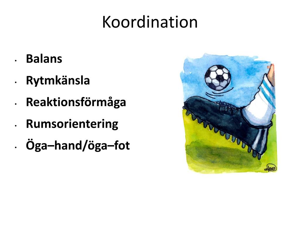 Koordination • Balans • Rytmkänsla • Reaktionsförmåga • Rumsorientering • Öga–hand/öga–fot