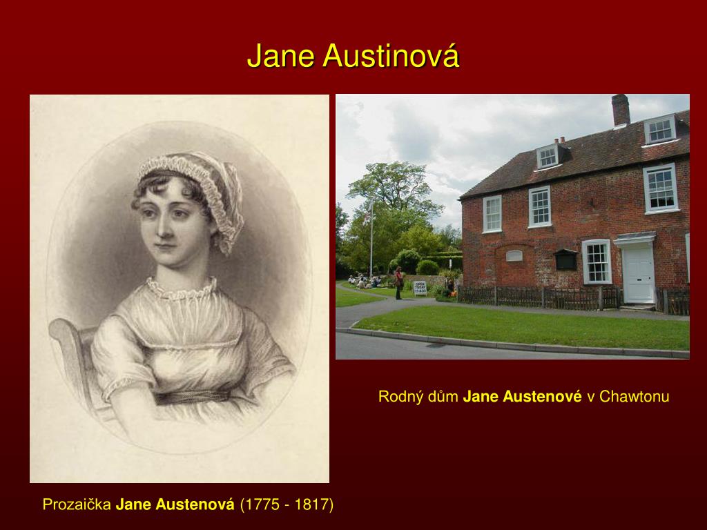Jane Austinová Rodný dům Jane Austenové v Chawtonu Prozaička Jane Austenová (1775 - 1817)