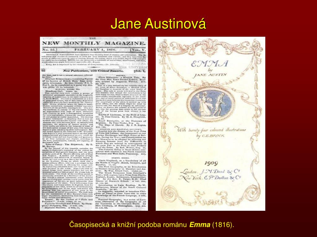 Jane Austinová Časopisecká a knižní podoba románu Emma (1816).