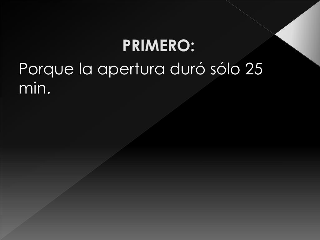 PRIMERO: Porque la apertura duró sólo 25 min.