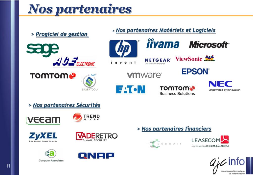 Nos partenaires > Nos partenaires Matériels et Logiciels > Progiciel de gestion > Nos partenaires Sécurités > Nos partenaires financiers