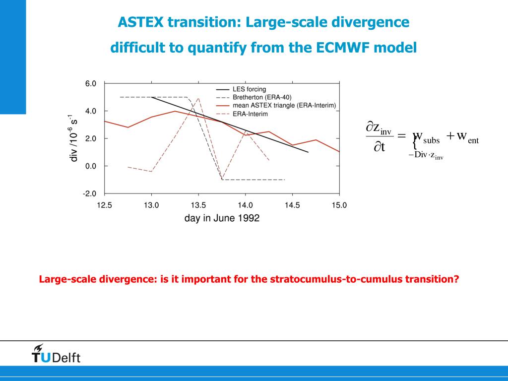 ASTEX transition: Large-scale divergence difficult to quantify from the ECMWF model Large-scale divergence: is it important for the stratocumulus-to-cumulus transition?