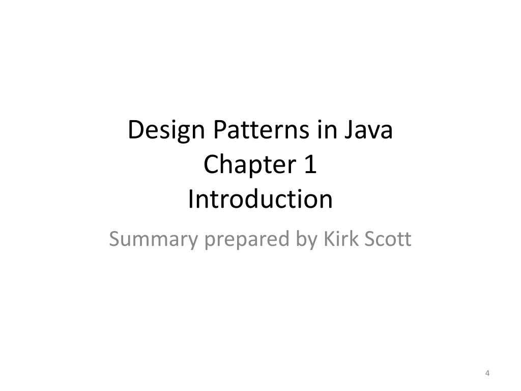 Design Patterns in JavaChapter 1Introduction Summary prepared by Kirk Scott