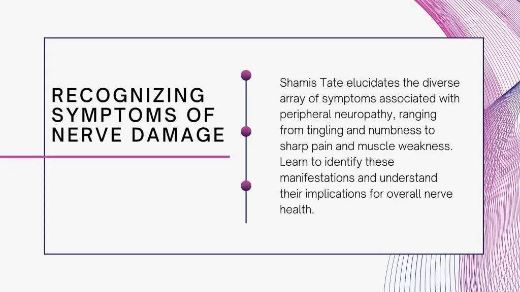 Shamis Tate elucidates the diverse array of symptoms associated with peripheral neuropathy, ranging from tingling and numbness to sharp pain and muscle weakness. Learn to identify these manifestations and understand their implications for overall nerve health. RECOGNIZING SYMPTOMS OF NERVE DAMAGE