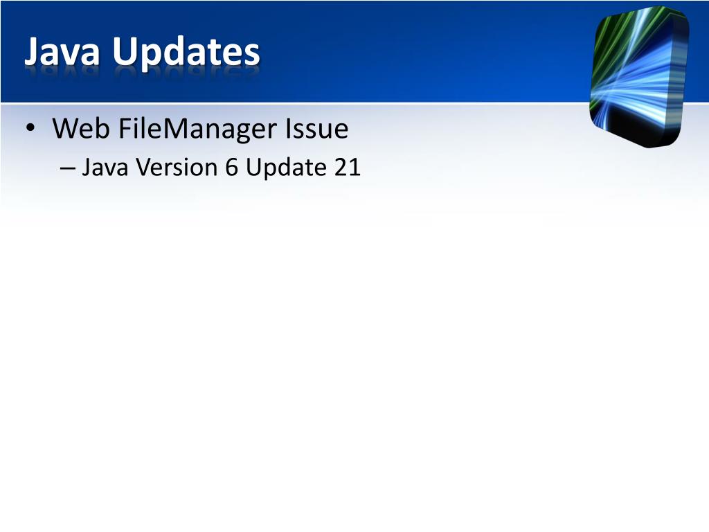 Java Updates • Web FileManager Issue • Java Version 6 Update 21