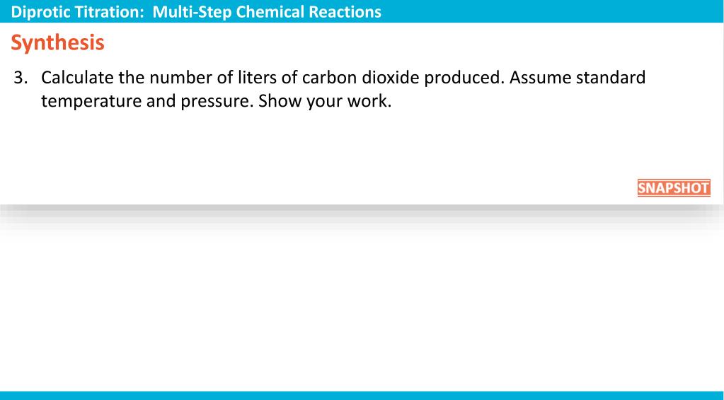 Diprotic Titration: Multi-Step Chemical Reactions Synthesis • Calculate the number of liters of carbon dioxide produced. Assume standard temperature and pressure. Show your work.