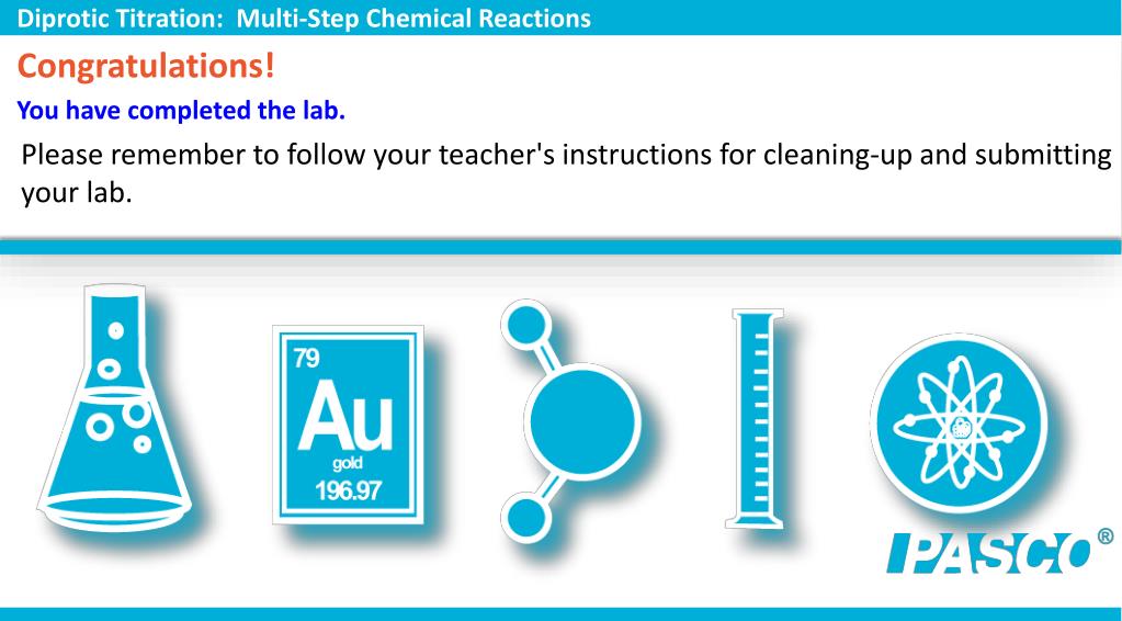 Diprotic Titration: Multi-Step Chemical Reactions Congratulations! You have completed the lab. Please remember to follow your teacher's instructions for cleaning-up and submitting your lab.