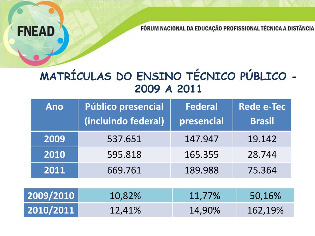 2011/2012 – Presencial = 3,1% Educação a distância = 12,12%