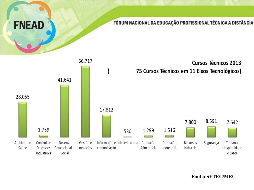 Quantidade de cursos por região Fonte: Sistec/Setec/MEC