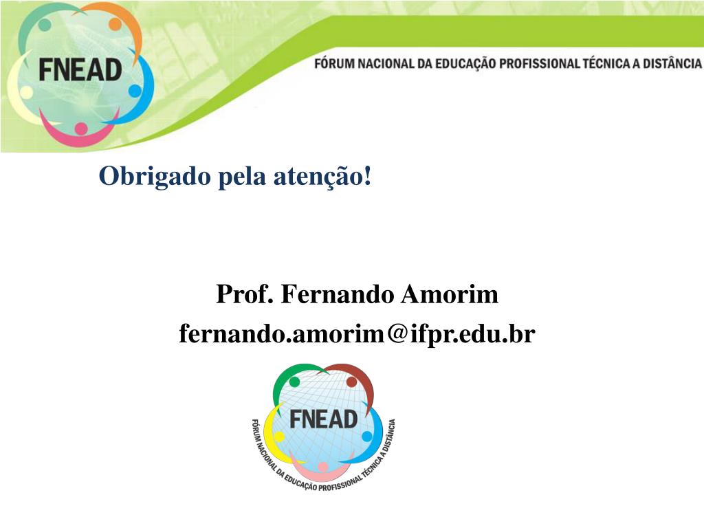 Obrigado pelaatenção! Prof. Fernando Amorim fernando.amorim@ifpr.edu.br