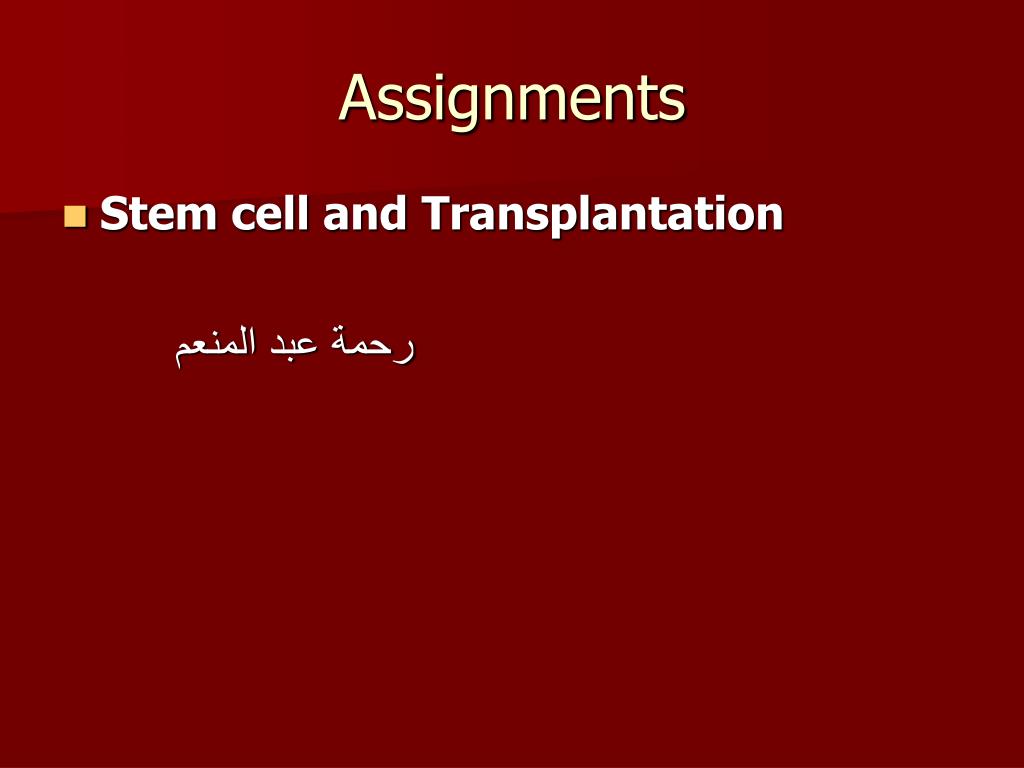Assignments • Stem cell and Transplantation رحمة عبد المنعم